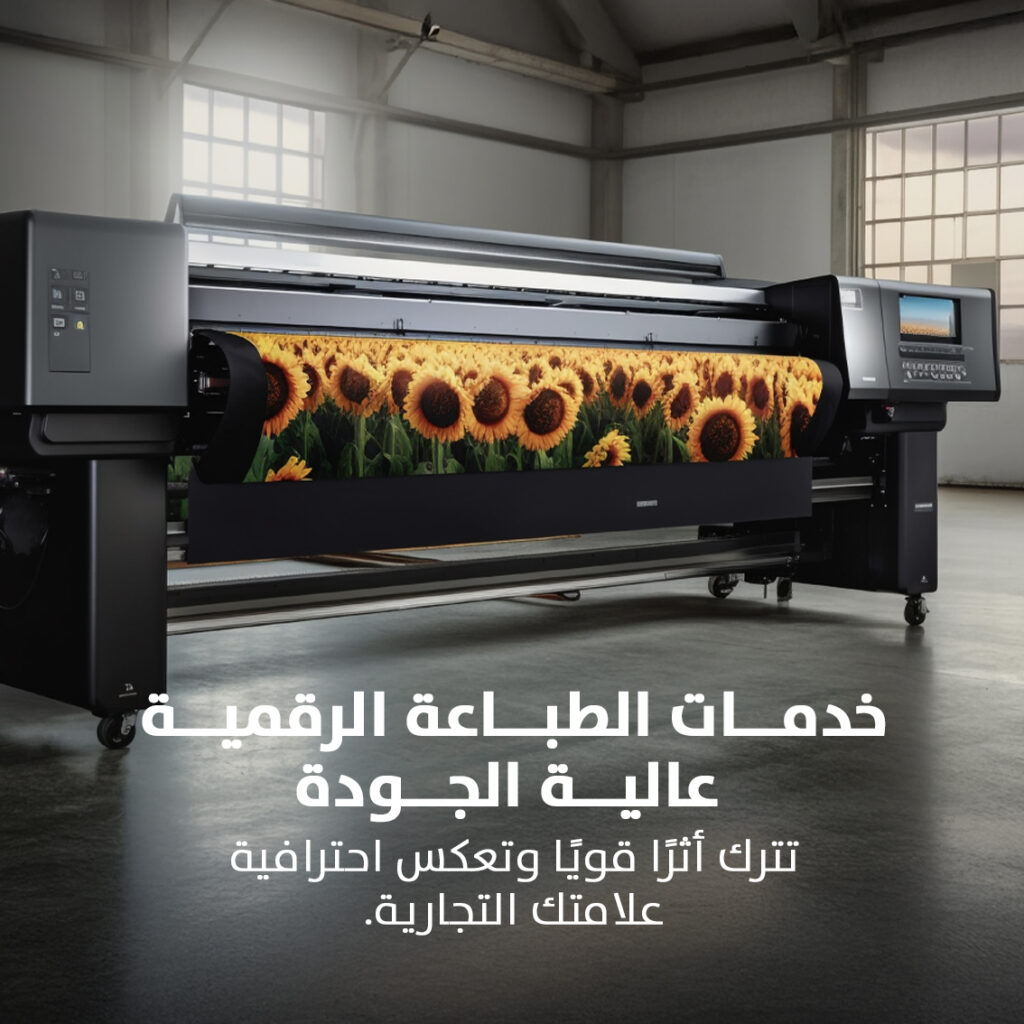 نقدم خدمات طباعة رقمية عالية الجودة تُحول أفكارك إلى واقع بألوان زاهية وتفاصيل دقيقة. باستخدام تقنيات الطباعة المتقدمة ومواد ممتازة، نضمن أن تكون كل مطبوعة دقيقة، متينة، وذات تأثير بصري قوي. يدير فريقنا العملية كاملة من التصميم إلى المنتج النهائي، لتقديم نتائج متسقة في كل مرة. بفضل خبرتنا، تترك مطبوعاتك تأثيرًا قويًا وتعكس احترافية علامتك التجارية.