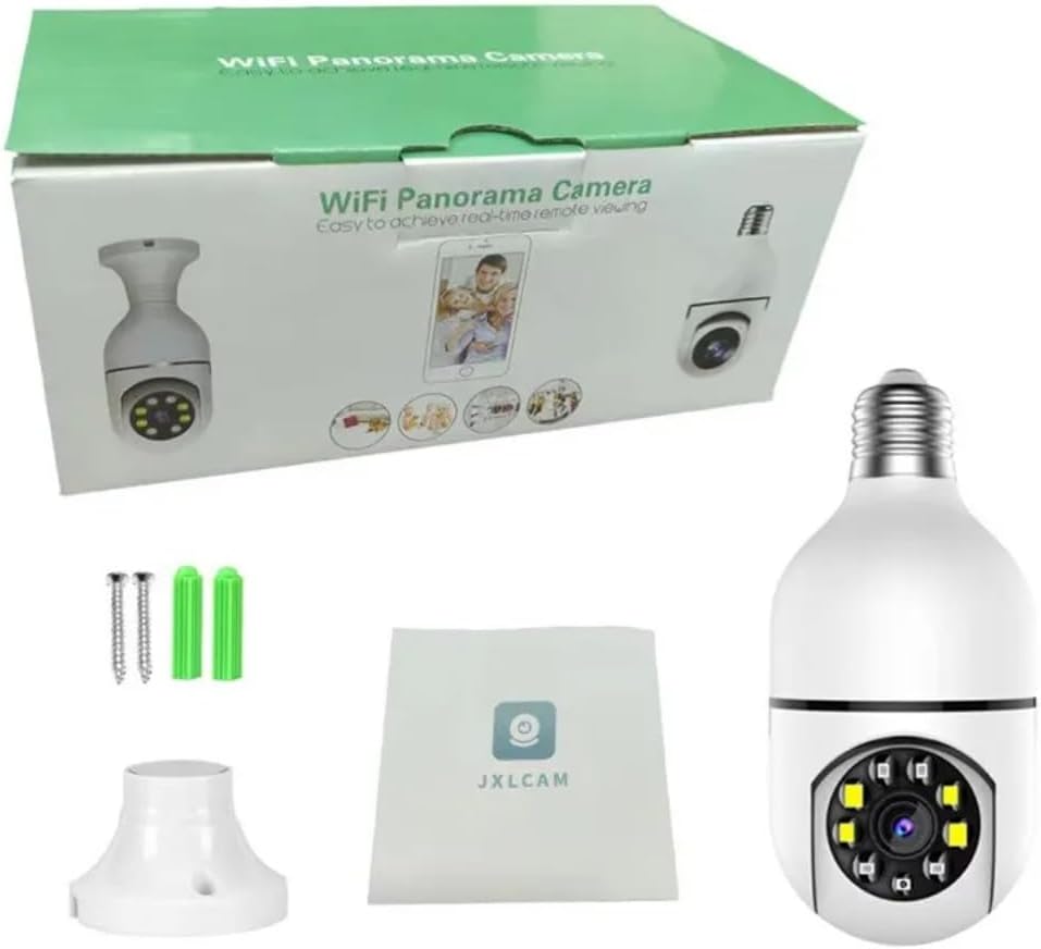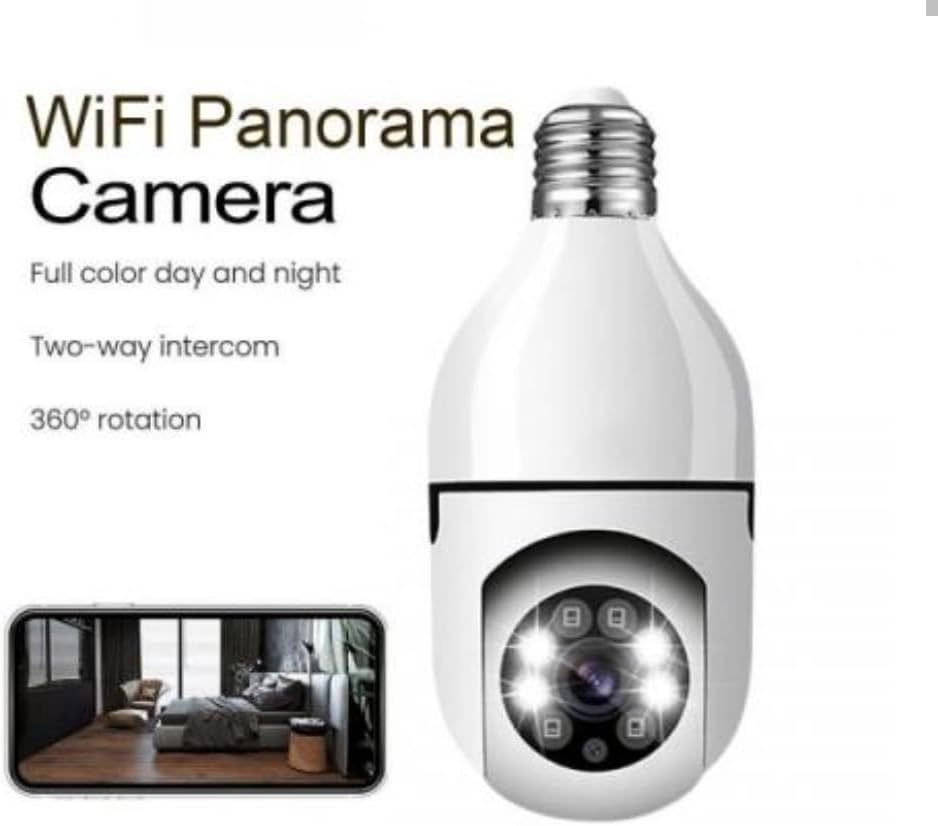 A 360‑degree panoramic security camera with 1080p HD video, WiFi connectivity, and smart features including motion detection, two‑way audio, and night vision. Designed for full‑room coverage and easy setup through a user‑friendly mobile app.