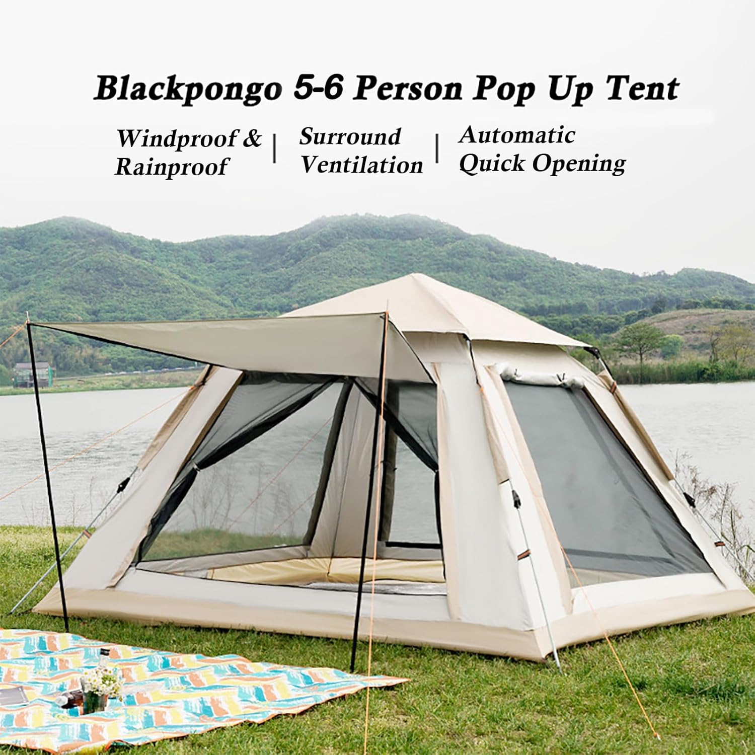 Spacious 6‑Person Tent– Large 94.5×94.5×61 in interior, easily stored in a compact carry bag.