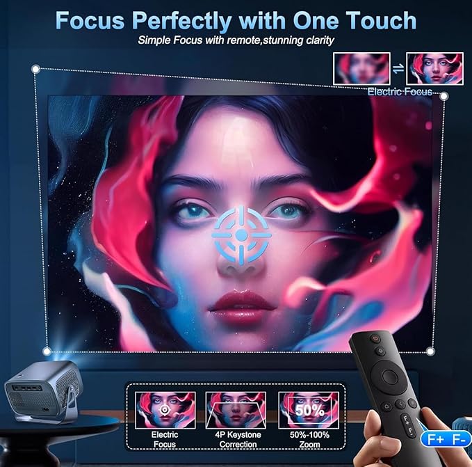 – Mini Projector with Electric Focus, Android 11, 4K Support, 15000 Lumens, WiFi 6/BT5.0, 360° Adjustment.” Short Product Title