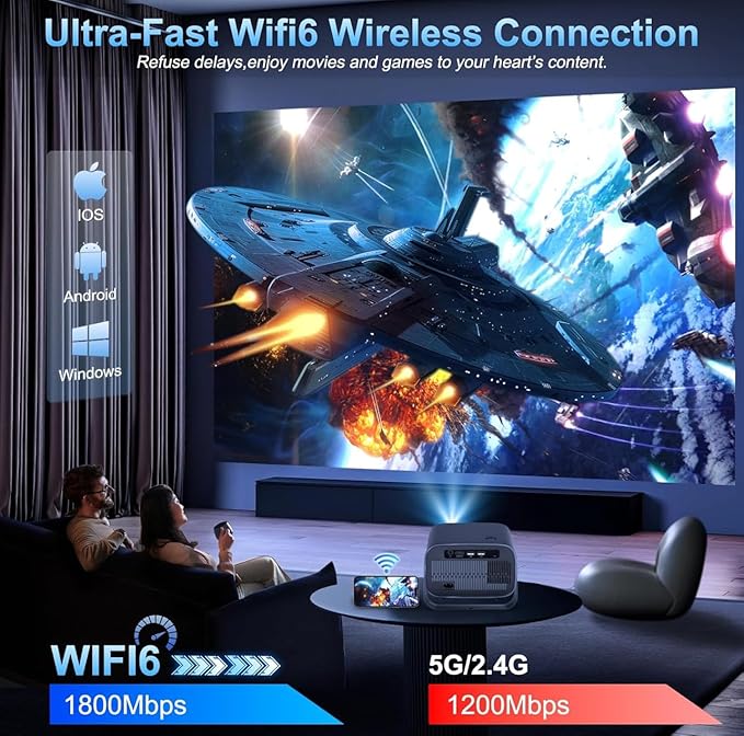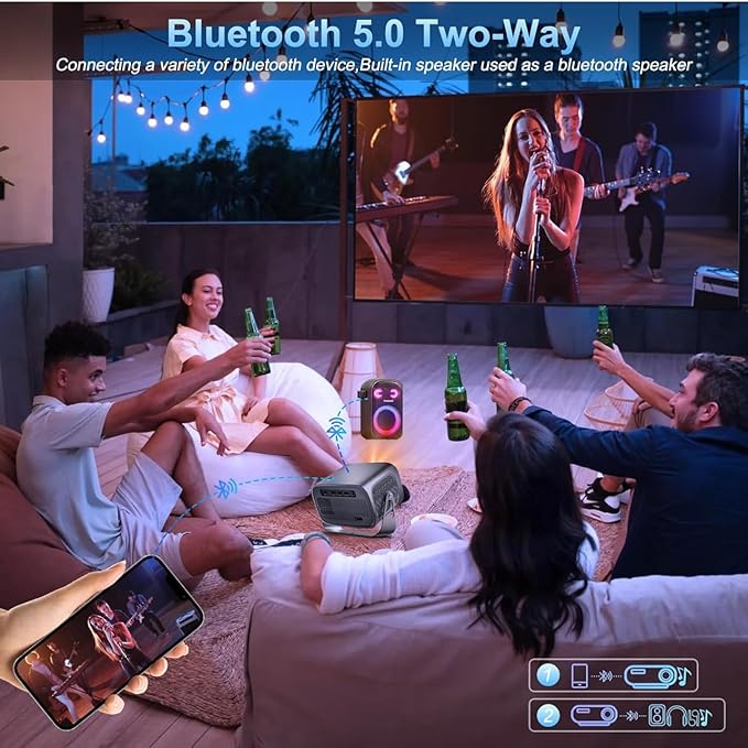 • Enjoy bright, sharp 4K‑supported visuals with 15000 lumens and built‑in Android 11 for easy streaming. WiFi 6 and Bluetooth 5.0 ensure smooth playback and wireless audio pairing. With 360° angle adjustment and a portable, energy‑efficient design, this mini projector is perfect for home theaters, gaming, and outdoor movie nights.