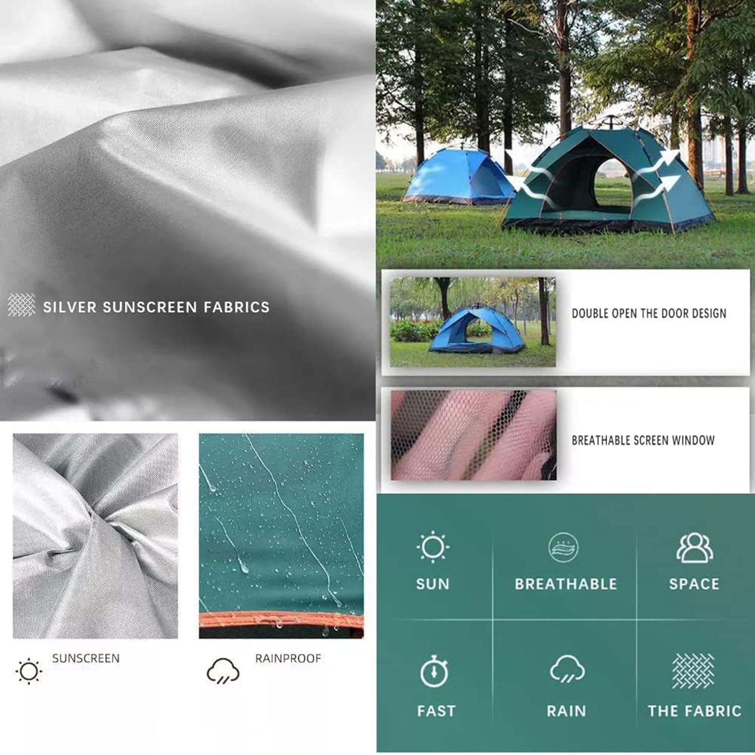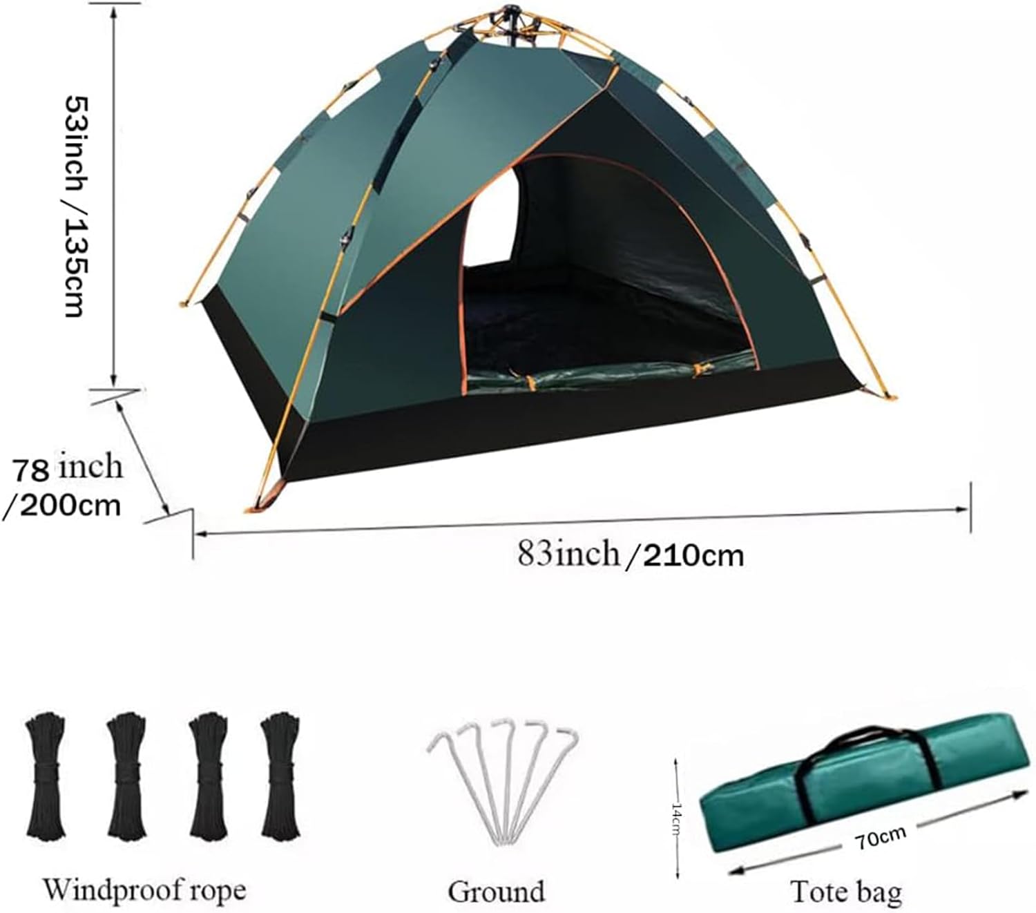 Compact and easy to carry—fits in a backpack or car. Made with durable 190T silver‑coated fabric and a waterproof 210D Oxford floor with fully taped seams for total rain protection. This instant pop‑up tent (210×140×110 cm) fits 1–2 people and packs down to a lightweight 24×5×5 in size. Ideal for camping, hiking, hunting, and travel. Dual zippered doors with dense mesh offer ventilation and mosquito protection. Perfect for family car camping or campsite use.