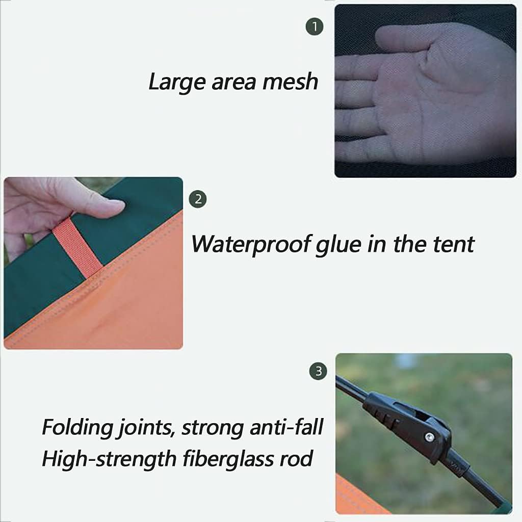Waterproof outing tent with 3‑second automatic setup, reinforced rainproof design, 3‑sided ventilation, strong fiberglass rods, and spacious interior—perfect for hiking and outdoor trips.